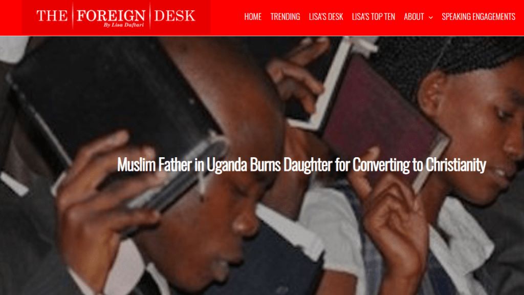 The Religion of Peace is at it again. Today’s example of Islam’s tolerance is ‘A 24-year-old woman in Uganda was beaten and burned all over her body by her father, a teacher of Islam, when he found out about her conversion to Christianity, according to Morning Star News.
