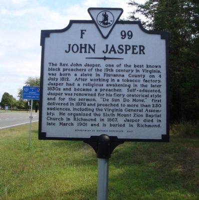 It may be well to say here that Jasper never lost his pride in white people. He delighted to be with them. Thousands upon thousands went to hear him, and while there was a strain of curiosity in many of them there was an under-note of respect and kindliness which always thrilled his heart and did him good. Time and again he spoke to me personally of white people, and always with a beautiful appreciation. It is noteworthy that the old man rode his high horse when his house was partly filled with white people, and it would be no exaggeration to say that not since the end of the war has any negro been so much loved or so thoroughly believed in as John Jasper. https://docsouth.unc.edu/church/hatcher/hatcher.html