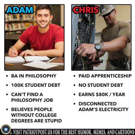 Trade apprenticeship or soft science degree?