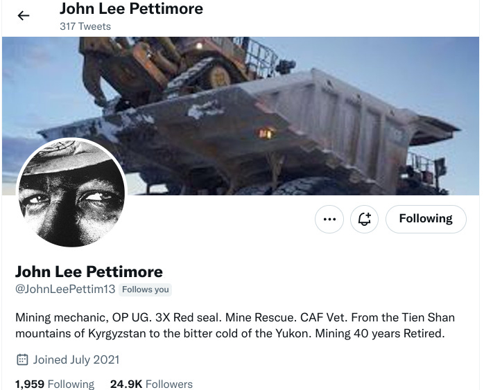 John Lee Pettimore is a man of few words, but when he speaks, people listen: In exchange for some 317 tweets, he has garnered nearly 25k followers.