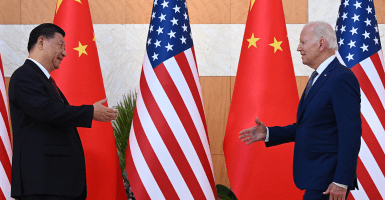 “More and more Americans are recognizing that the Chinese Communist Party is the single greatest threat to our security and prosperity,” Rep. Jim Banks, R-Ind., says. Pictured: President Joe Biden and Chinese President Xi Jinping prepare to shake hands as they meet on the sidelines of the Group of 20 summit in Indonesia on Nov. 14. (Photo: Saul Loeb/AFP/Getty Images)