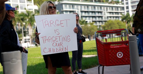 A woman protests outside of a Target store on June 1 in Miami. The protesters were objecting to “Pride Month” merchandise at Target. (Photo: Joe Raedle/Getty Images)