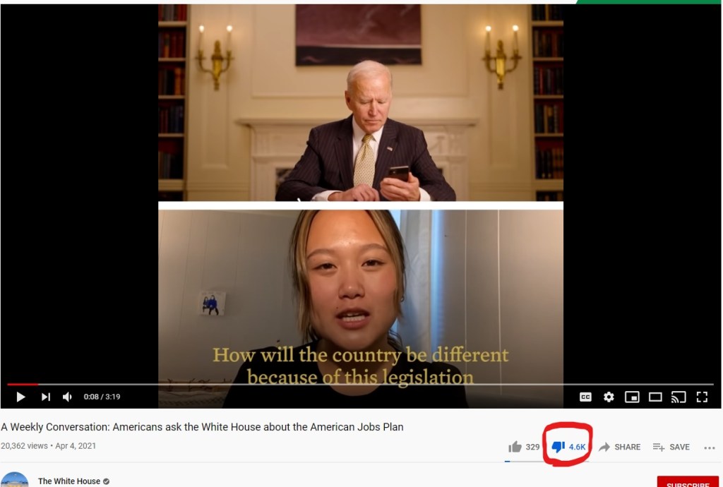 So much for FREEDOM! ‘About 2.5 million dislikes have been removed from Biden videos on the official White House channel since Biden became president, according to an analysis.