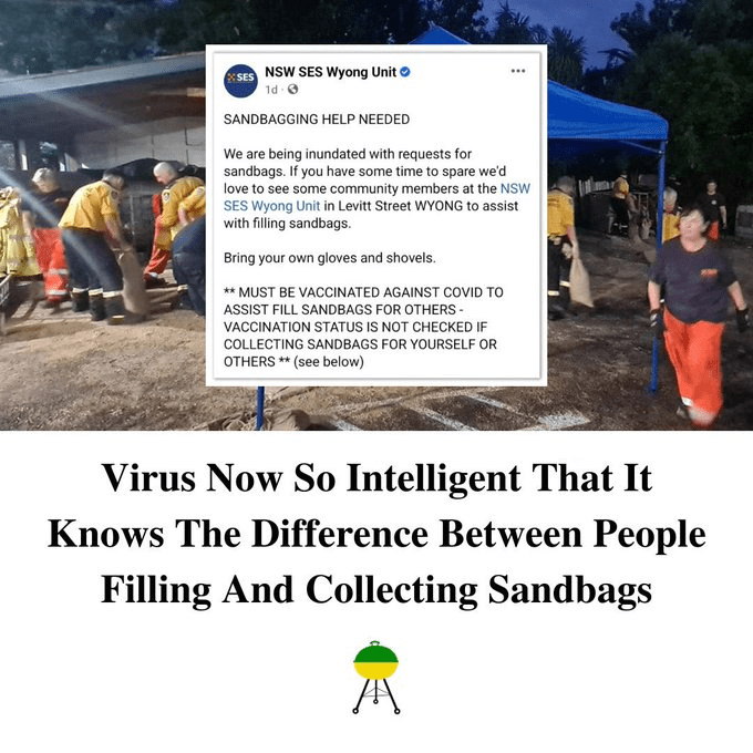 Adding to the grief for local SES operators was a decision by the NSW state government and SES leadership to only allow fully vaccinated members of the community to roll up their sleeves and fill the sandbags.