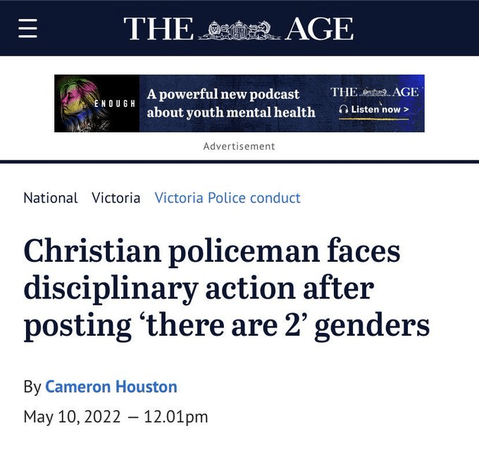 “All these people who come to this country and want to live here have to sign up to it, yet politicians don’t have to. So I find it bizarre that they made these seven core values, but they haven’t had to abide by it themselves.”‘ https://www.rebelnews.com/senior_constable_quits_victoria_police_to_fight_for_aussie_values?