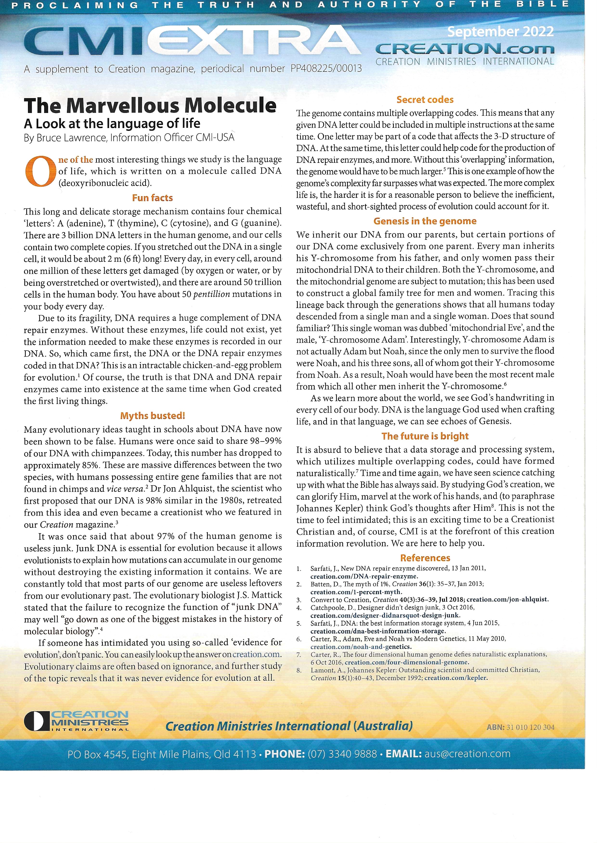 Posted in: Science. Tagged: Bible, Biologists, Biology, Christianity, Creation Magazine, Creation Ministries International, Creation Science, Creation Scientists, Creation/Evolution, Faith, Higher Education, Iowa, Life, Lord Jesus Christ/Grace/Salvation, Molecule, News, pdf, religion, Science, True/False, True/Information, truth. Leave a comment