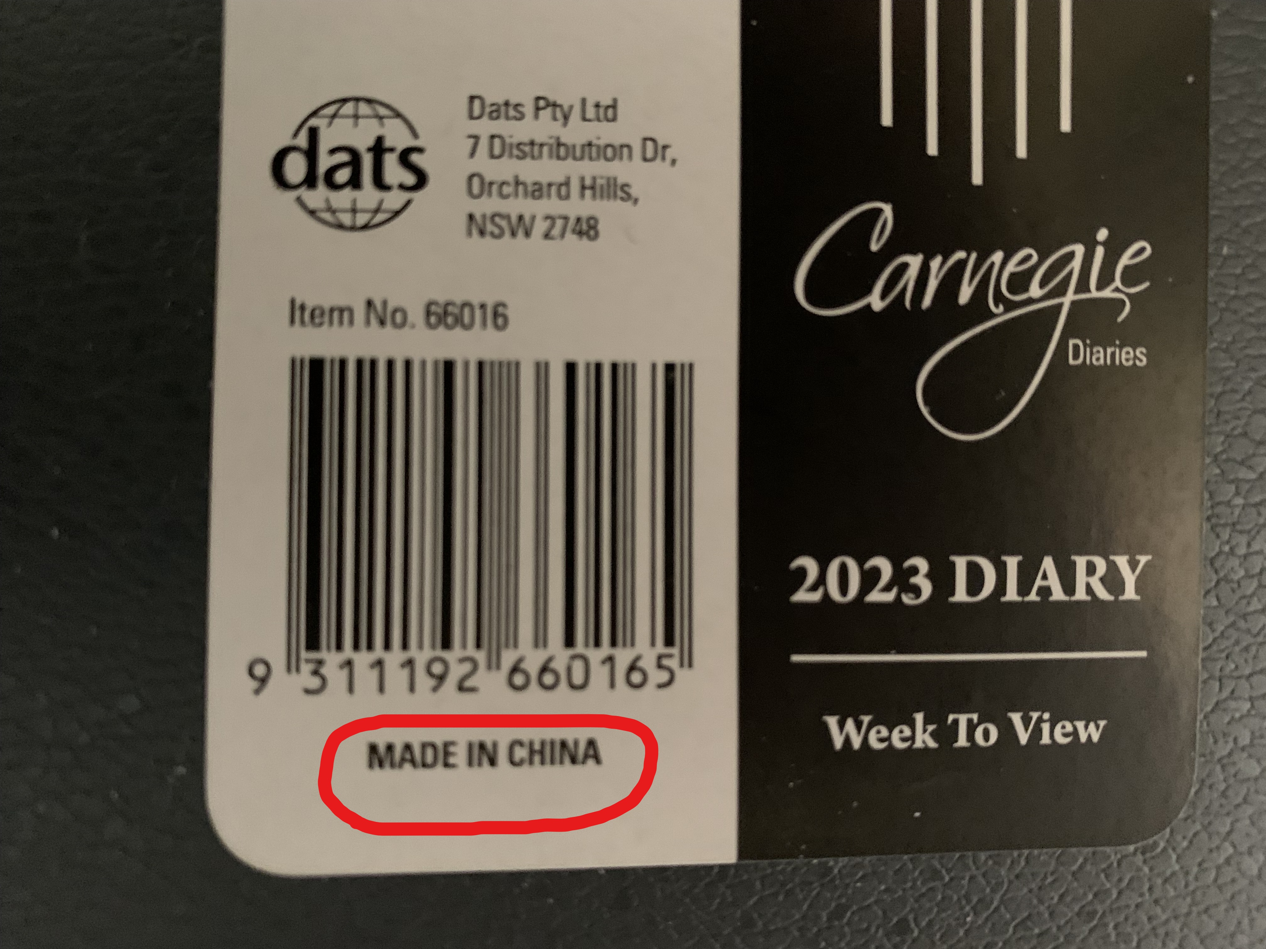 Every year I purchase a new Diary calendar for my desk. Last year I was able to purchase the type I personally like at one of the stores here in town. This year not so. So, online I went looking for the type of calendar that I like. I found one and ordered it. It arrived the other day and after unwrapping it the first thing I noticed was where it was made.